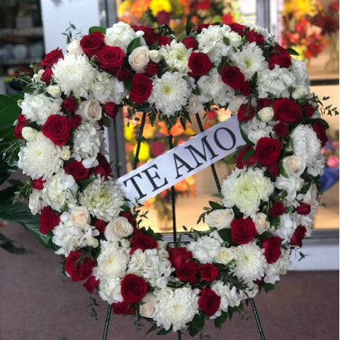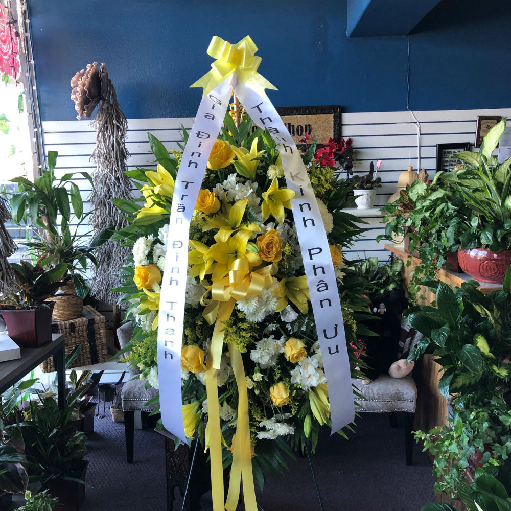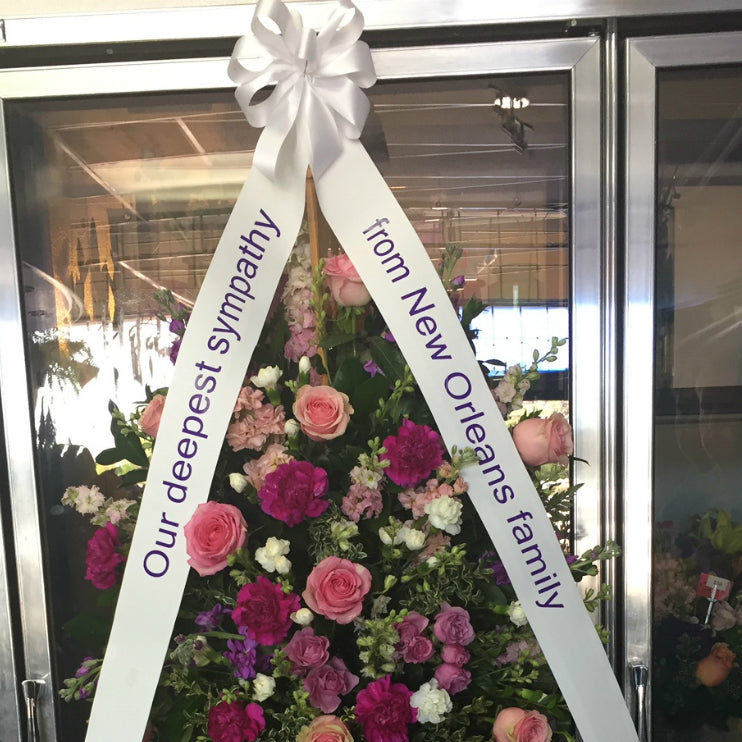 Banner color is selected by our floral designers to match the funeral arrangements.